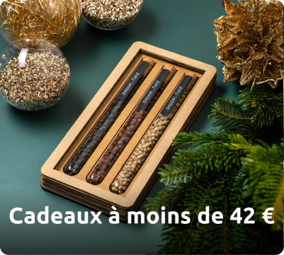 Chez nous, vous trouverez beaucoup de coffrets cadeaux Emballage avec du poivre de Kampot et du sel de Kampot de qualité premium. Naturels, 100% de qualité et toujours locaux, nous sélectionnons également les matériaux qui composent les coffrets cadeaux set. Ne vous inquiétez pas pour l'emballage. Les coffrets cadeaux set pour vous sont assemblés à la main, avec soin et emballés joliment avec une attention maximale.