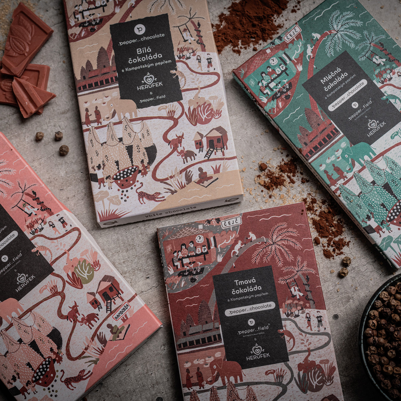 · Krásný ilustrovaný obal s obrázky Kambodže a pepře