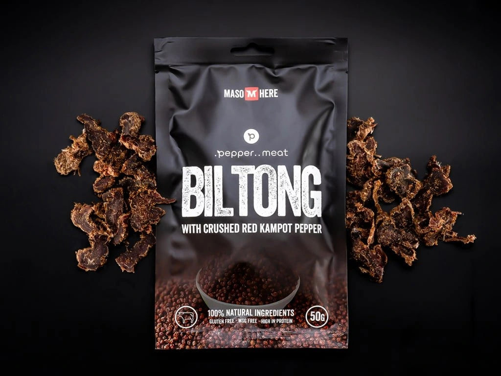 In contrast to jerky, the spices used to flavor the meat are different, and because of that it has an absolutely unique flavor.. In the special preparation process, which has its roots in South Africa, we decided to add the best from South Asia in the form of red Kampot pepper, and as a result, it has an absolutely phenomenal flavor.