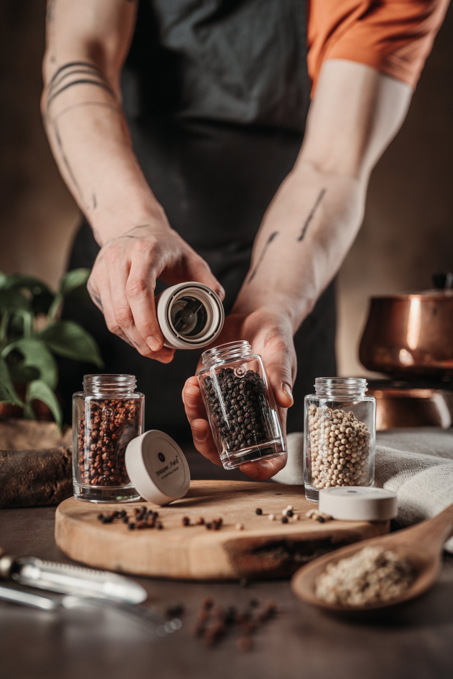 Moulin à poivre CrushGrind avec 2 réservoirs en verre et 3x50 g de poivre