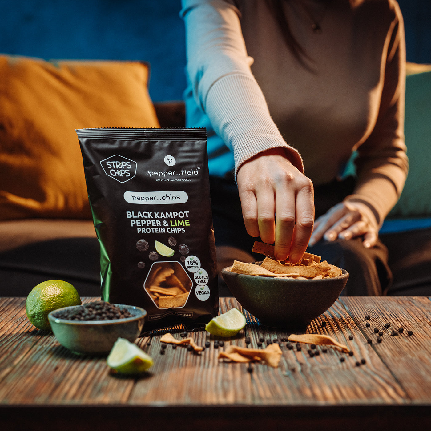 Chips protéinés au poivre noir de Kampot et citron vert