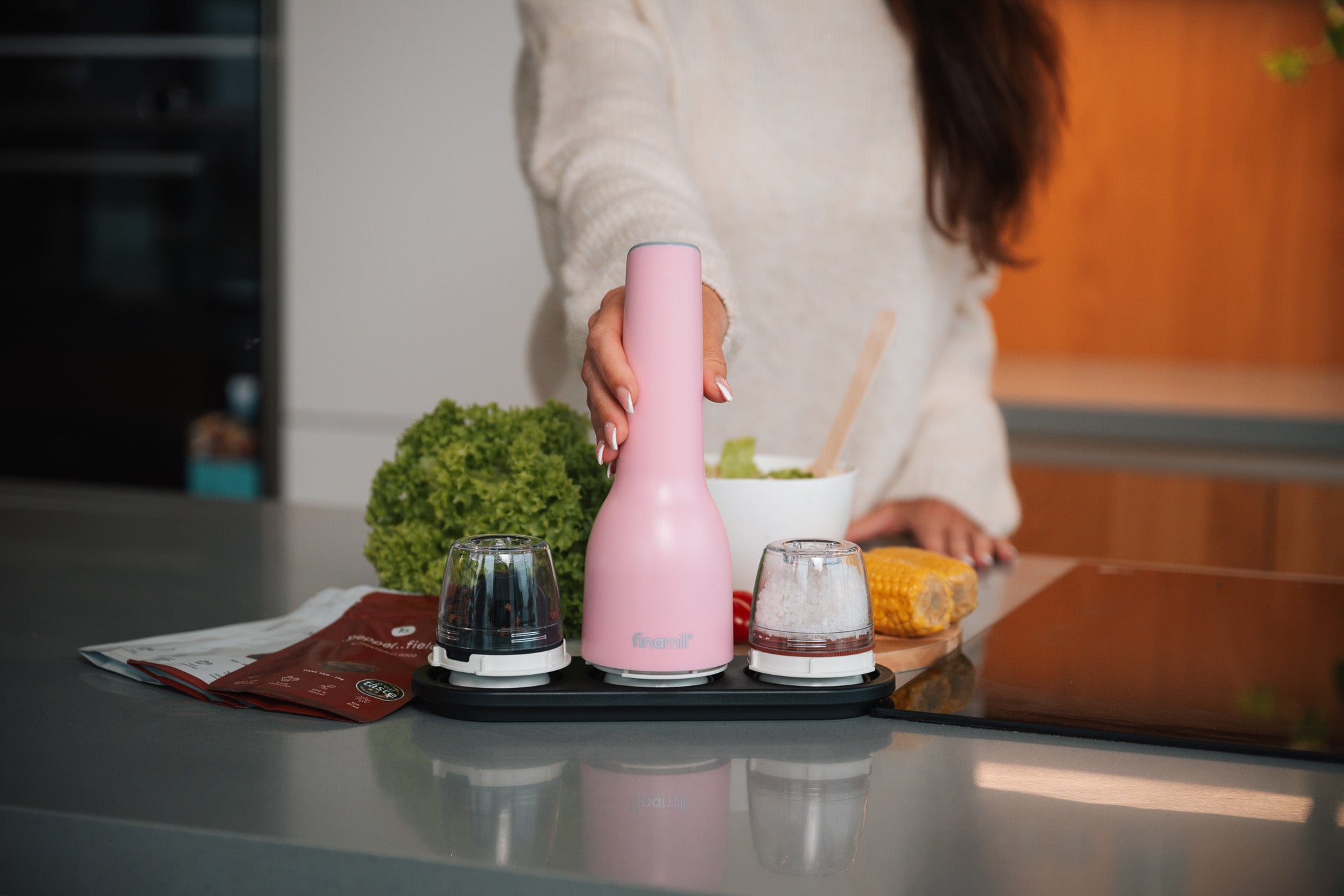 Po více než 10 letech vývoje a 35 patentech se z jejich vize zrodil FinaMill – elektrický mlýnek s vyměnitelnými zásobníky, který si zamilovali lidé po celém světě. Získal prestižní ocenění jako Red Dot či A'Design Award a stal se i součástí výběru Oprah’s Favorite Things. FinaMill není jen kuchyňský pomocník – je to příběh vášně, inovace a chuti spojovat lidi dobrým jídlem.
